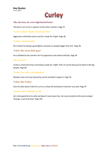 Of Mice And Men Character Key Quotations Miss Ryan S Gcse English Media
