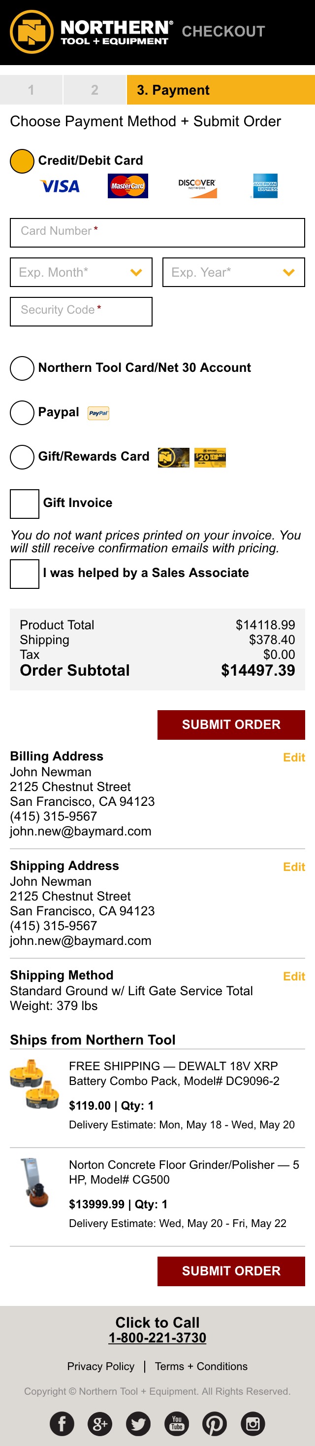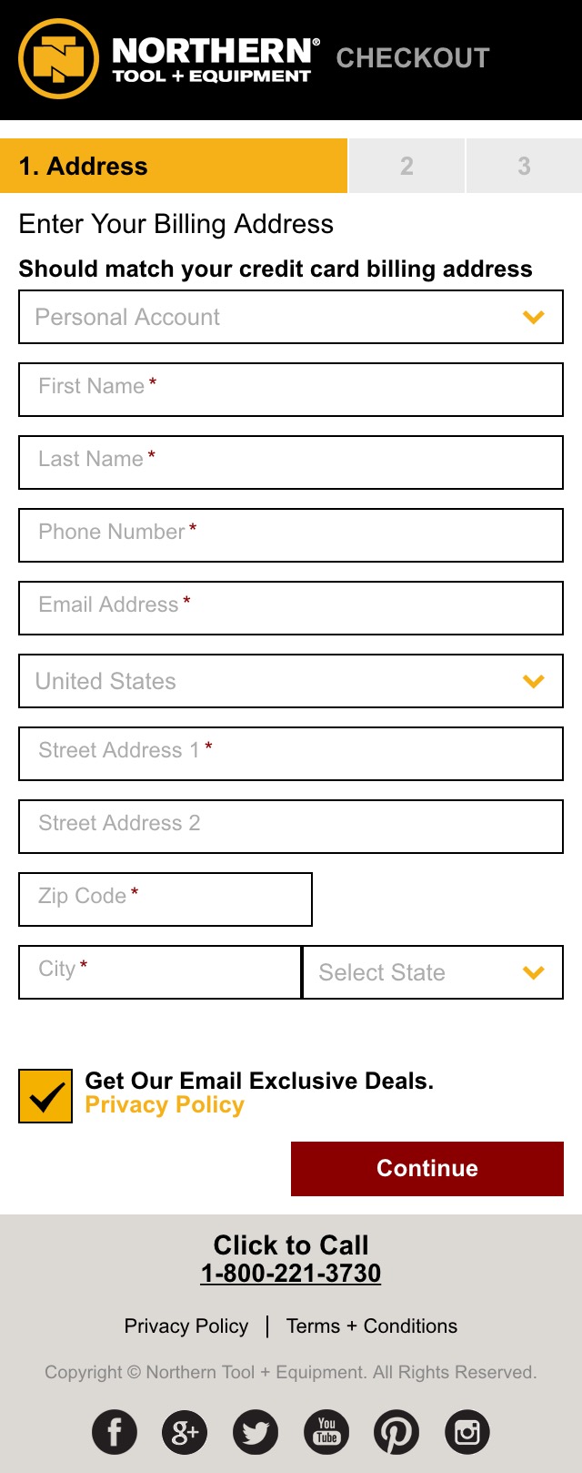 Northern Tool S Mobile Billing Address 339 Of 496 Billing Address Examples Baymard Institute